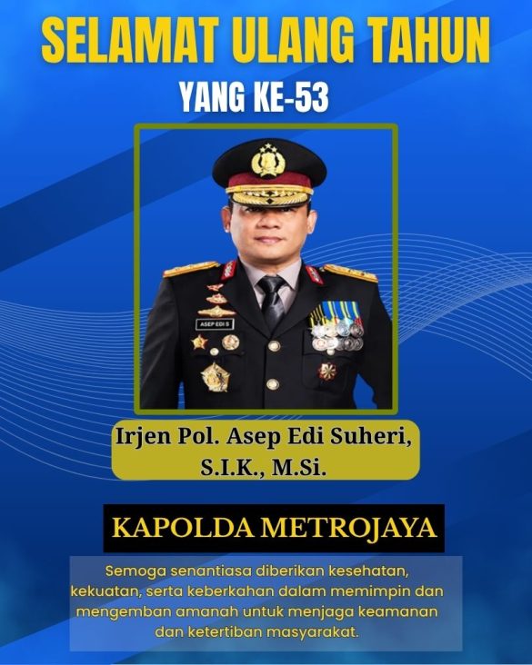 Kapolda Metro Jaya, Irjen Pol. Asep Edi Suheri, S.I.K., M.Si., hari ini merayakan ulang tahunnya yang ke-53. Sebagai sosok pemimpin yang tegas, humanis, dan berdedikasi tinggi dalam menjaga keamanan serta ketertiban di wilayah hukum Polda Metro Jaya, beliau mendapat banyak doa dan ucapan selamat dari berbagai kalangan.